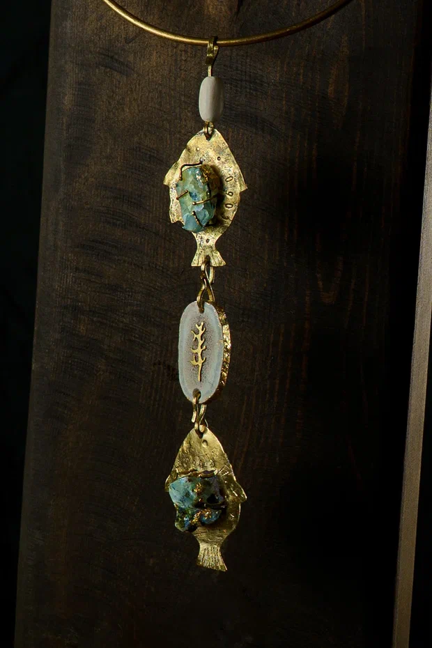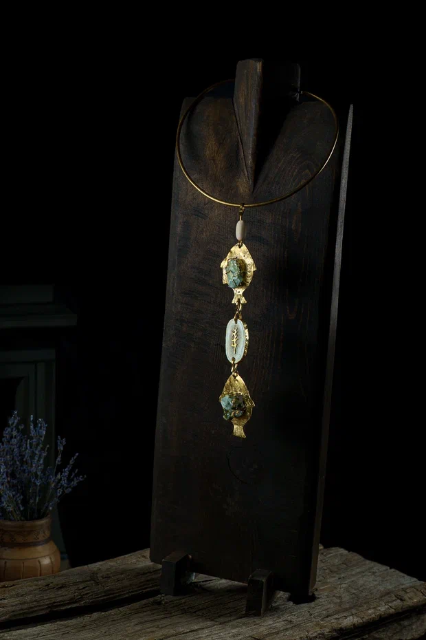 Колье с рыбами - уникальный аксессуар, выполненный вручную по индивидуальному заказу.Символика рыб ассоциируется с гармонией, изобилием и жизненной энергией, а дизайн подчёркивает природную эстетику и художественный вкус.